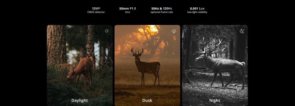 Zastosowany obiektyw 50 mm z jasną przysłoną F1,8 w połączeniu z algorytmem Light Pro znacząco poprawia jakość obrazu w warunkach szczątkowego oświetlenia. System skutecznie redukuje szumy i zwiększa jasność sceny, dzięki czemu cel pozostaje czytelny również o zmierzchu i w głębokiej nocy. Pole widzenia 12,6 m na 100 m oraz zasięg detekcji w dzień do 1500 m pozwalają efektywnie pracować zarówno w otwartym terenie, jak i w gęstym lesie. To urządzenie, który daje przewagę informacyjną – zanim zwierzyna zorientuje się, że jest obserwowana.