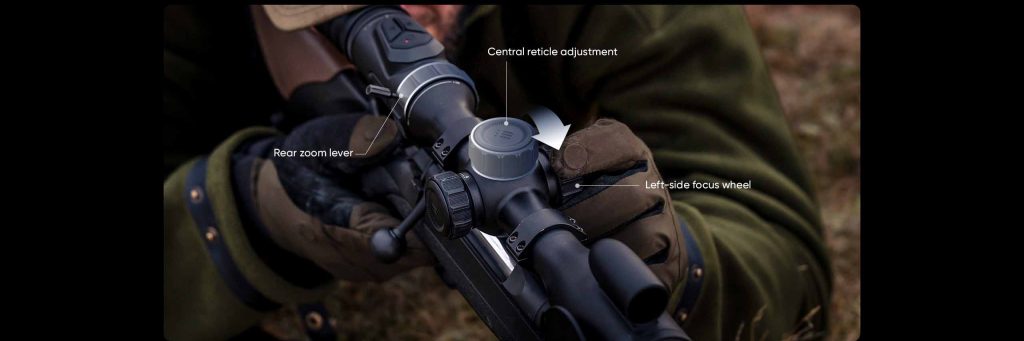 - Powiększenie 4×–24× z płynnym zoomem 0,1× umożliwia precyzyjne dopasowanie obrazu do dystansu.