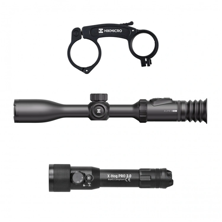 Celownik noktowizyjny HIKMICRO Alpex PRO A50PL LRF — luneta myśliwska dzień/noc HIKMICRO z dalmierzem laserowym, uchwytem pod IR i iluminatorem laserowym X-hog Pro v2 940/850 nm